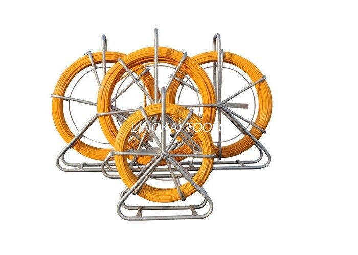 Orange Flexible Fiberglass Duct Rodder Plastic Layer With Rubber Wheels
