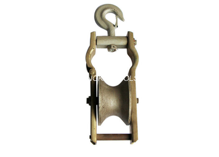 It has 0.5Ton,1Ton;2Ton, and materail is aluminum and nylon sheave two kinds, and applid not only used to be as hang model pulley but also as skyward model stringing pulley. This crossarm-mounted stringing pulley block's frame is heavy galvanzied.