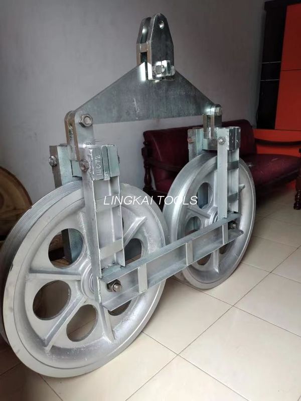 Application: The Tandem sheaves blocks are used for stringing single conductor or OPGW on tension tower with big span section or on corner tower. It is composed with double sheave rollers.